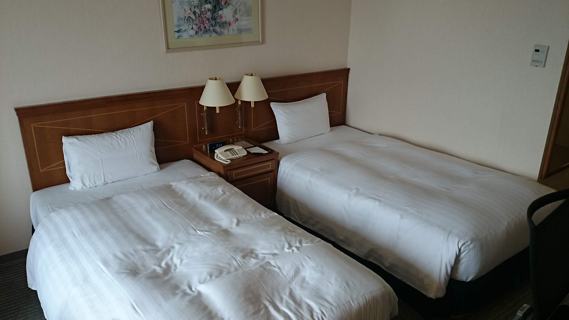 ホテルの部屋はシングルを予約していたのですが、ツインの部屋が空いているということで部屋をアップグレードしてくれました。