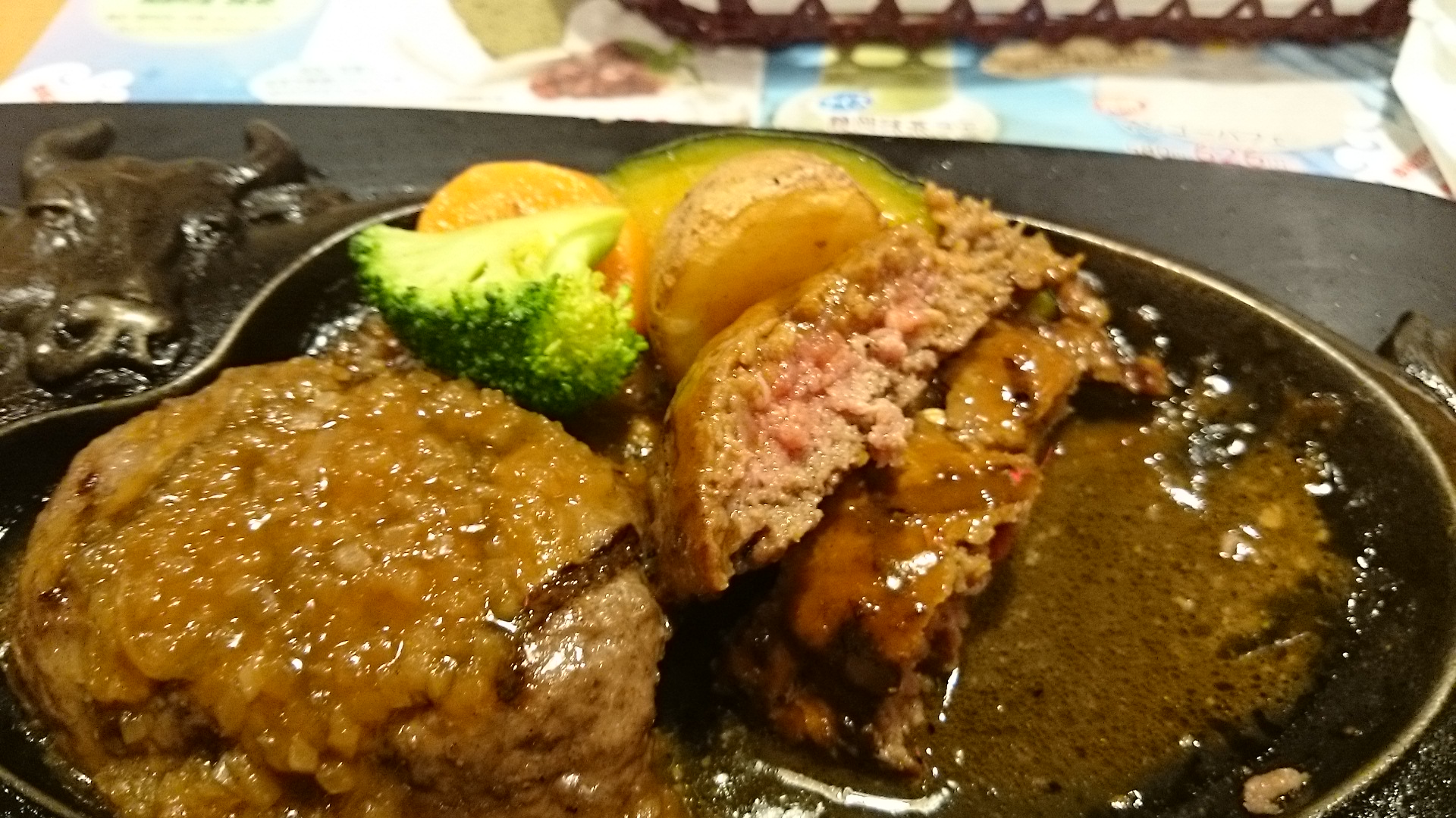 ちなみにげんこつハンバーグは中の肉が若干赤い状態(レア)で食べるものらしいです。(店員さんからそう進められました)