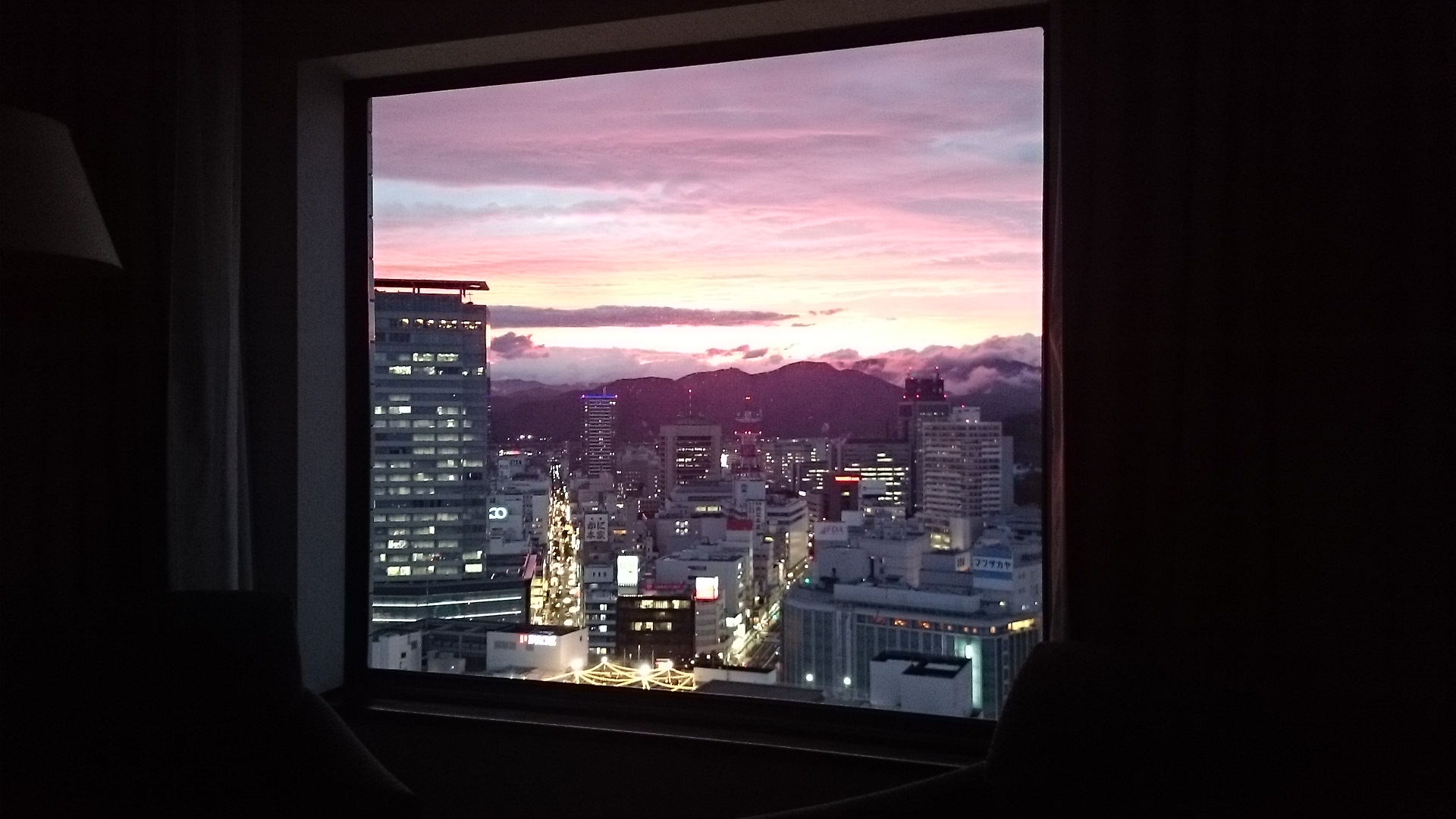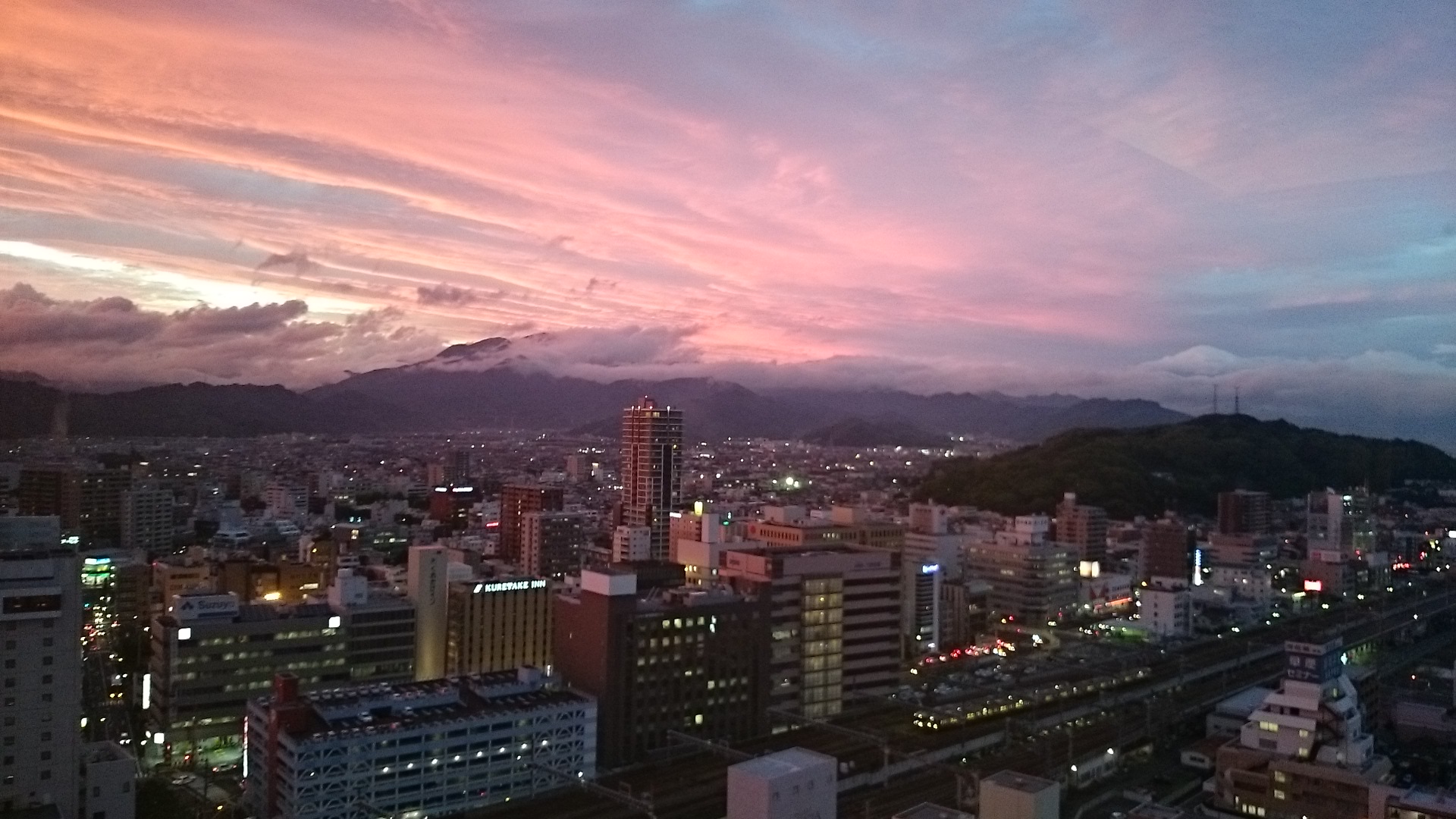 部屋の窓から外を見たら夕焼けがきれいなこときれいなこと。